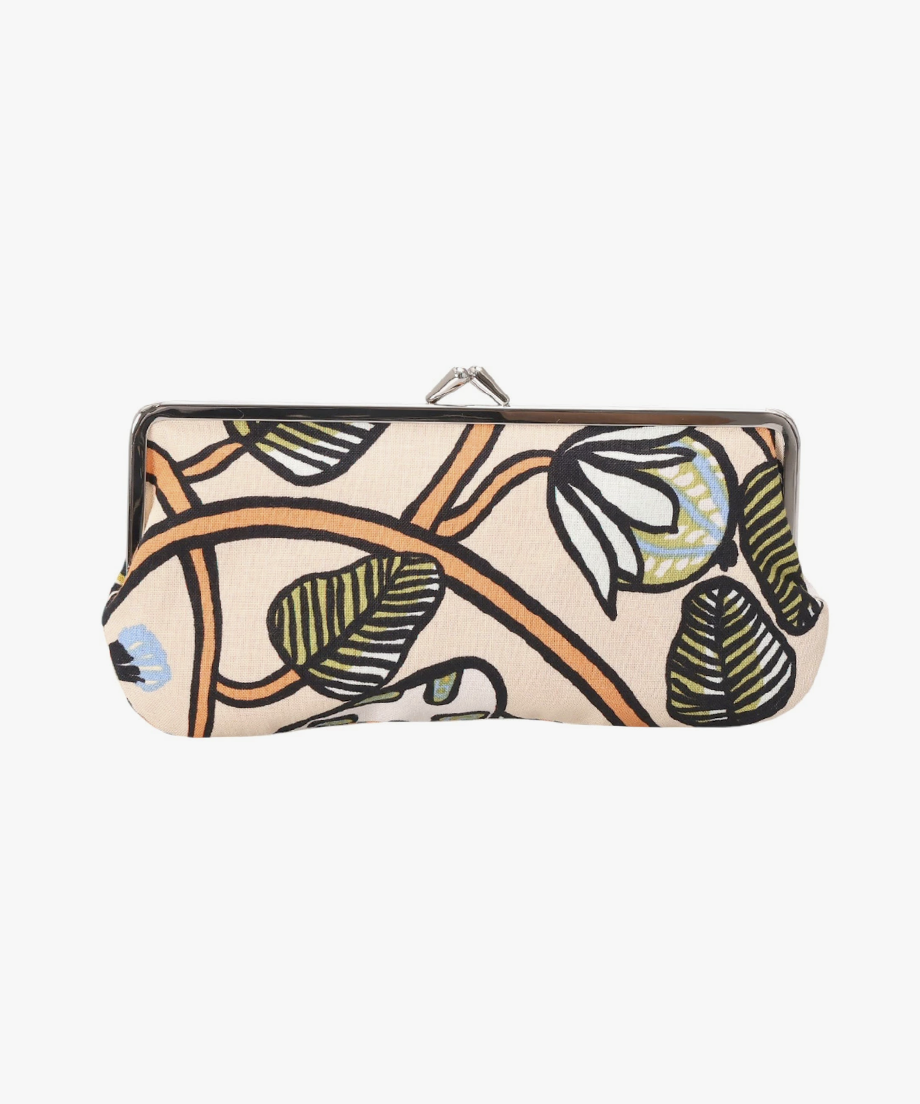 エルヤ・ヒルヴィによる華やかな「Tiara」柄が印象的ながま口ポーチ。さまざまな植物や花が生き生きと描かれ、自然の豊かさを感じさせるデザインです。横長タイプは、ペンケースとしても使いやすい便利なサイズ感。コスメだけでなく、文房具や小物の整理にも活躍する万能ポーチです。バッグの中をすっきり整えてくれる実用性が魅力です。