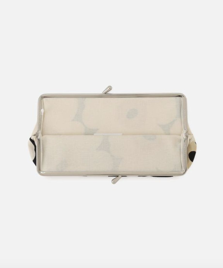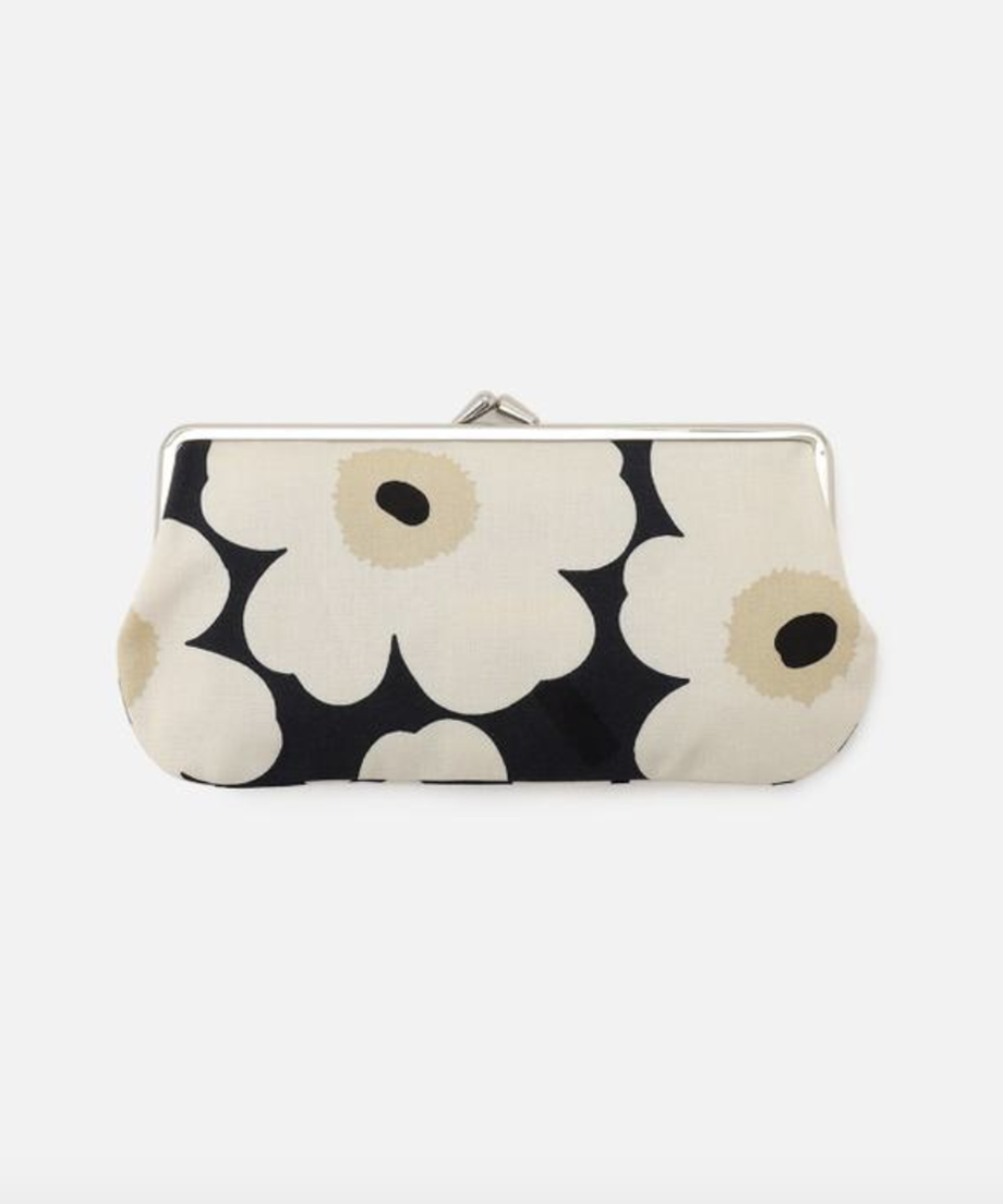 ケシの花をモチーフにした「ウニッコ」パターンを、メタリックゴールド×ネイビーブルーで仕上げた日本限定コレクションのがま口ポーチ。横長タイプは、ペンケースとしても使いやすい便利なサイズ感。コスメだけでなく、文房具や小物の整理にも活躍する万能ポーチです。バッグの中をすっきり整えてくれる実用性が魅力です。