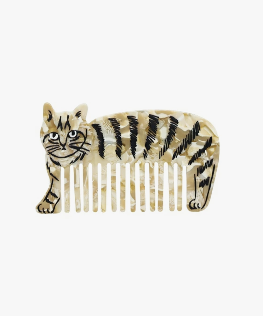 滑らかで光沢のある素材が魅力の、おしゃれなダイカットコーム。松尾ミユキさんが描く、どこかとぼけた表情のネコたちをそのままモチーフにした、愛らしいデザインです。コンパクトなサイズ感で、PVCケース付き。バッグやポーチにすっと収まり、お出かけのおともにもぴったりです。毎日使いたくなる可愛さで、プチギフトにもおすすめのアイテム。