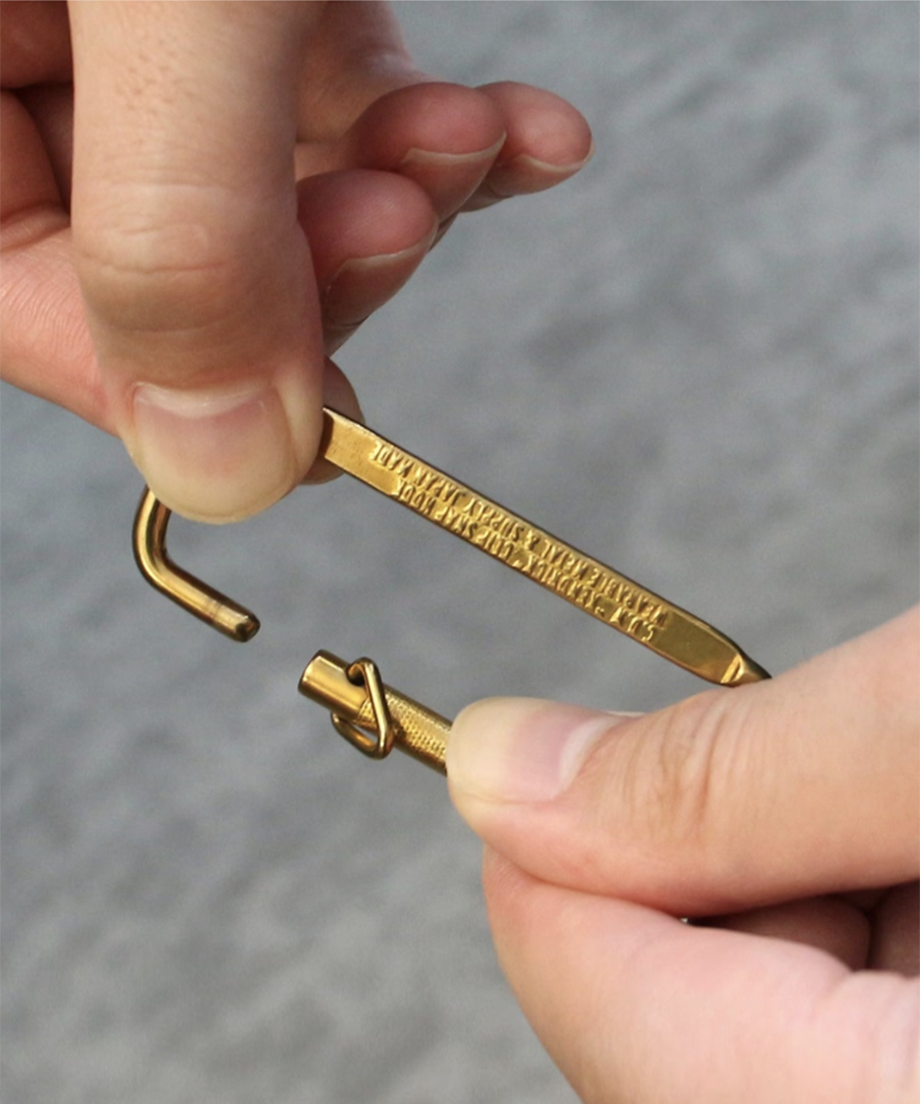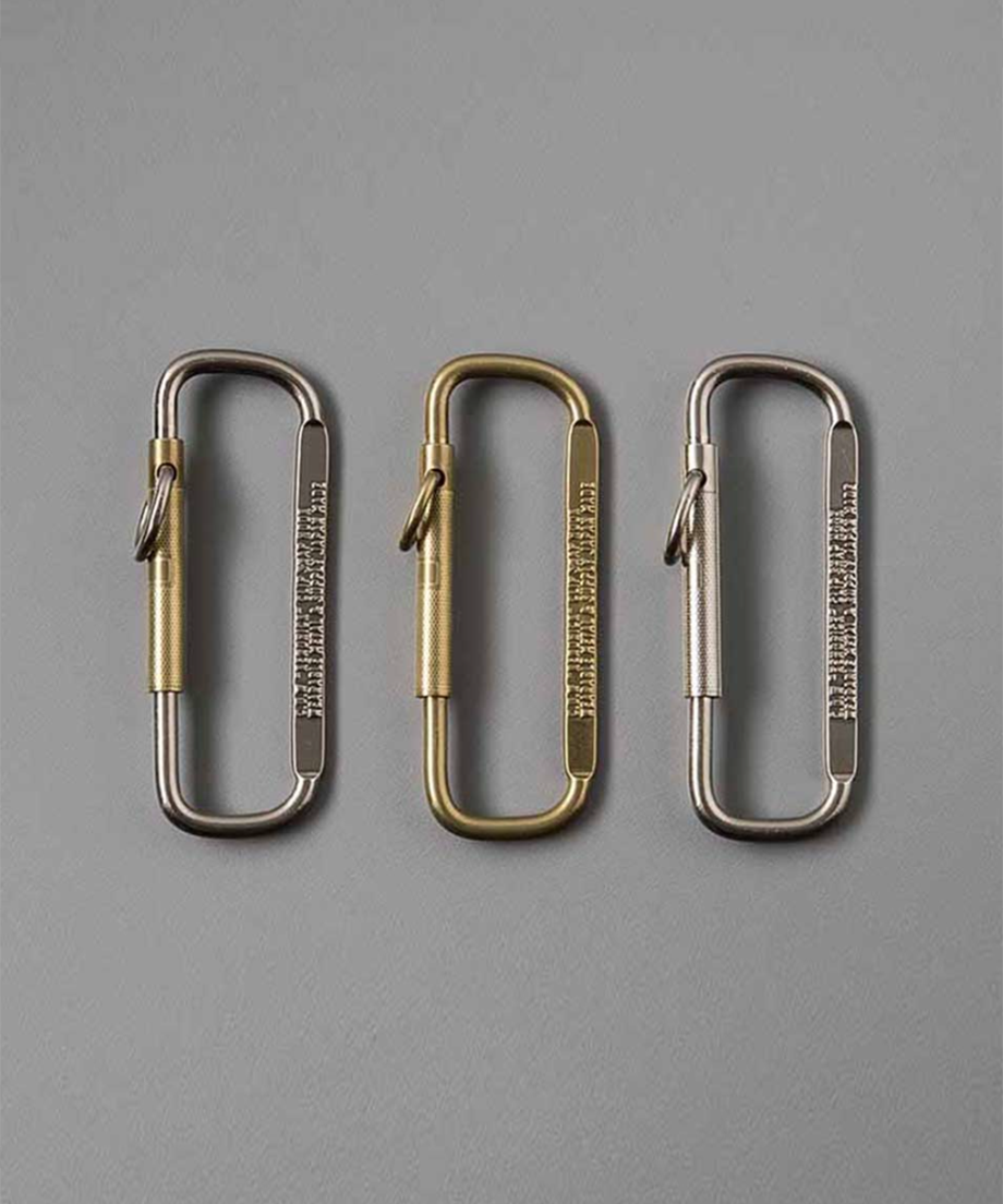 1950年代後半のアメリカで、大手自動車メーカーなどが販売促進用ノベルティとして配布していたキーフックをベースにしたアイテム。当時の無骨で実用的な佇まいはそのままに、サイズ感や素材、ディテールに現代的なアレンジを加えて再構築。シンプルながら合理的な構造は、現在主流となっているカラビナの原型ともいえるシステムです。ヴィンテージの背景を感じさせつつ、日常使いしやすい仕上がり。鍵まわりのアクセントとしてはもちろん、さりげなく個性を添えます。