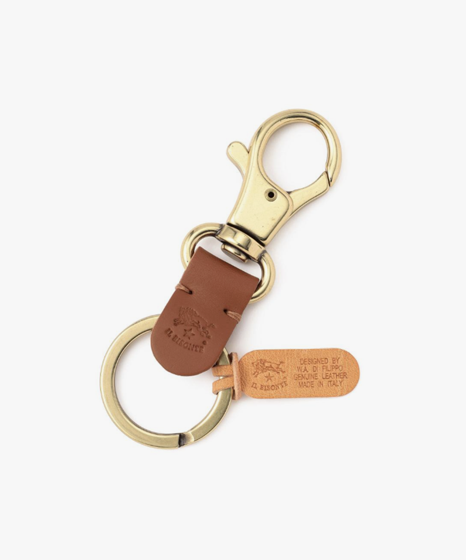 牛革素材とゴールドカラーの組み合わせが華やかに映えるキーリング。無駄のないシンプルなフォルムにエレガントさを添え、毎日の暮らしに上質なアクセントを加えてくれます。ご自宅用としてはもちろん、大切な方へのプレゼントにもおすすめのアイテムです。