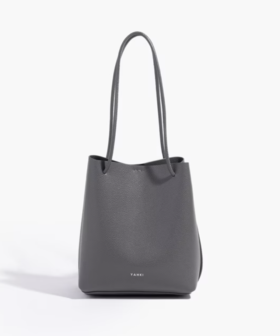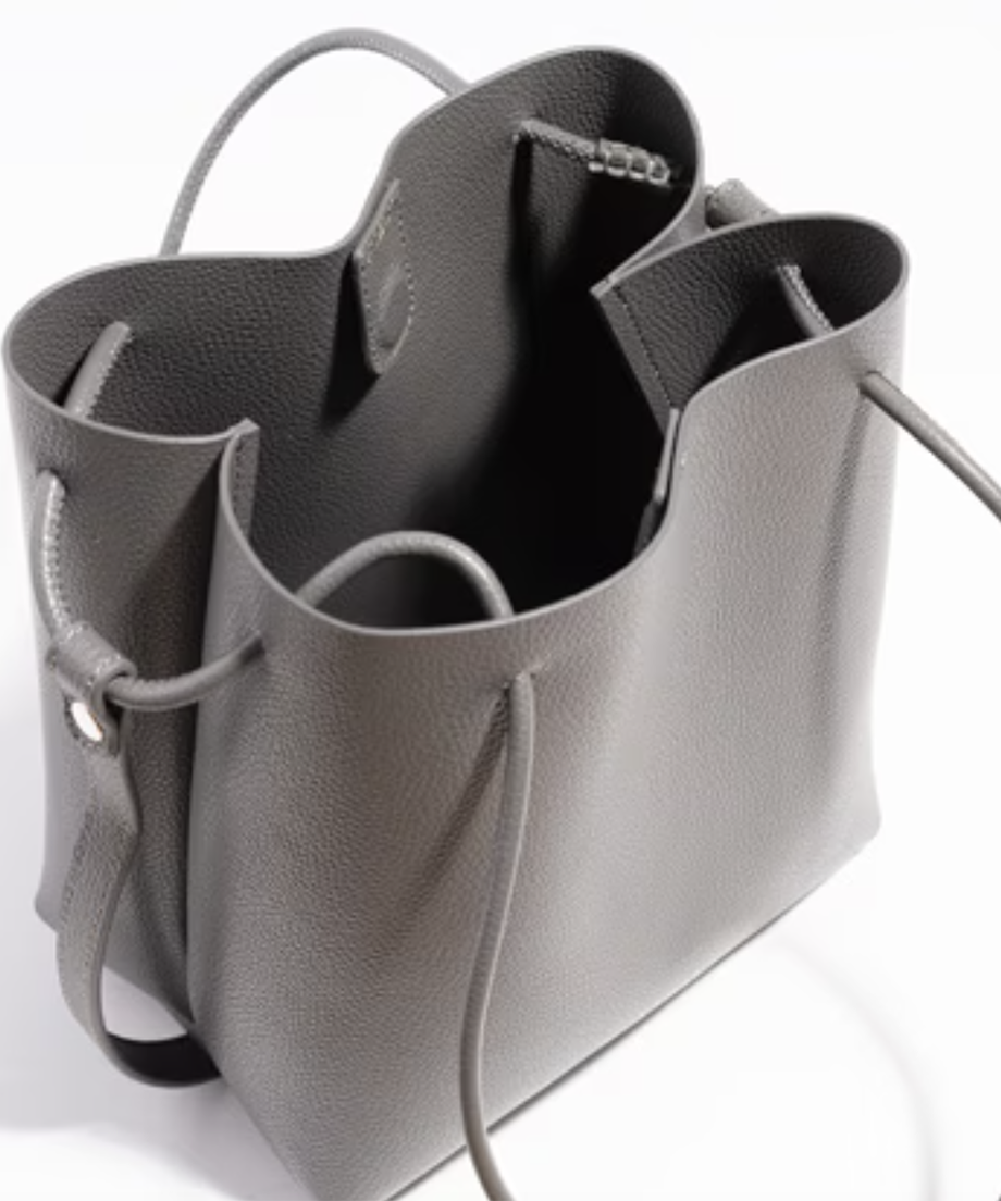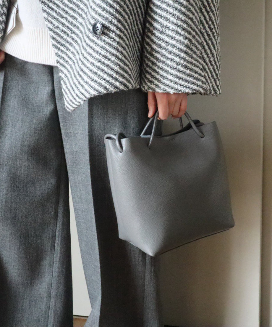 SOFT SHRINK レザーを使用したクロスボディバッグ。無駄のないミニマルなフォルムに、2本の丸紐ハンドルと、底を一周するベルトディテールがさりげないアクセントを加えています。このベルトは引き伸ばすことでストラップとして機能し、ハンドバッグからショルダーバッグへスムーズに切り替えが可能。コンパクトな見た目以上の収納力があり、日常使いにちょうどいい実用性と、上品なカジュアル感を併せ持つデザインです。