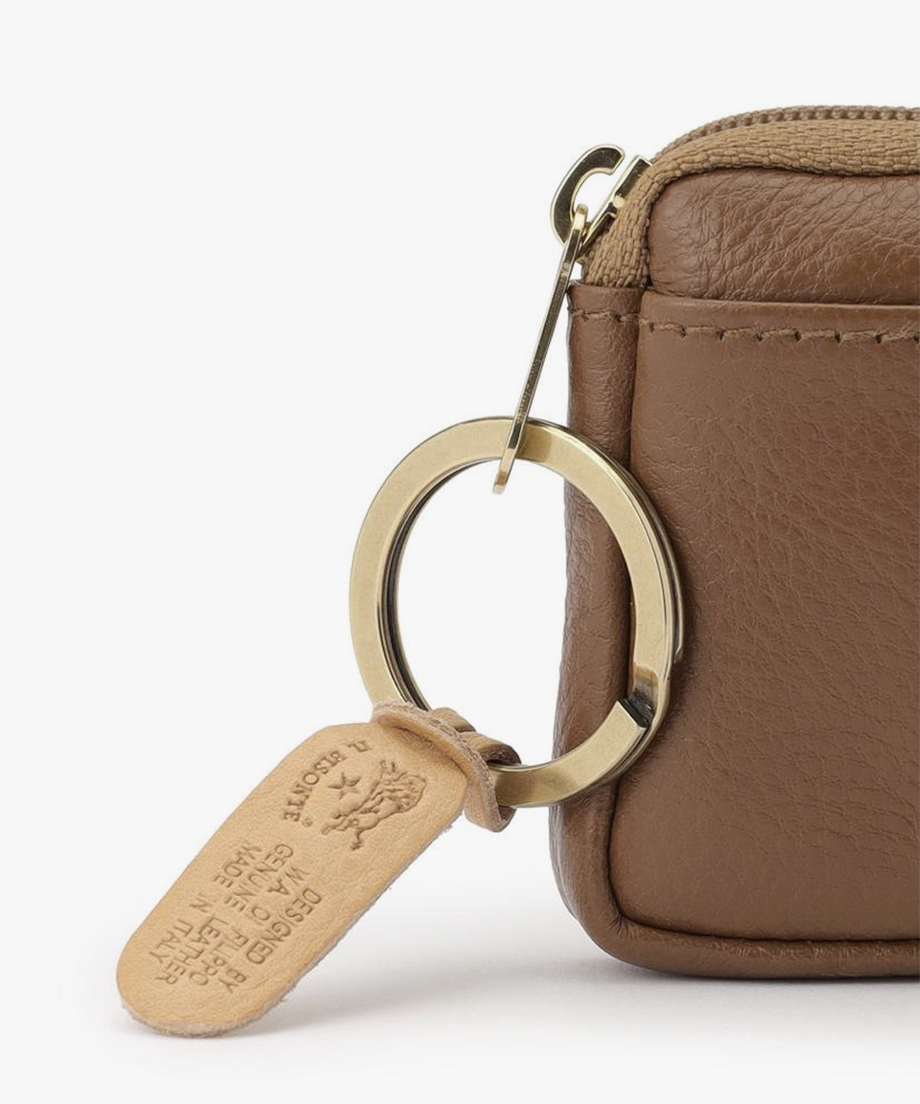 手にしっとりと馴染む上質な牛革を使用したコインパース。フロントにはさりげなく型押しされたロゴをあしらい、ジップ部分のリングが程よいアクセントを添えています。コンパクトながら使いやすく、必要なコインや小物をすっきりと収納可能。無駄のないシンプルなデザインは、飽きがこず長く愛用できるアイテムをお探しの方にぴったりです。