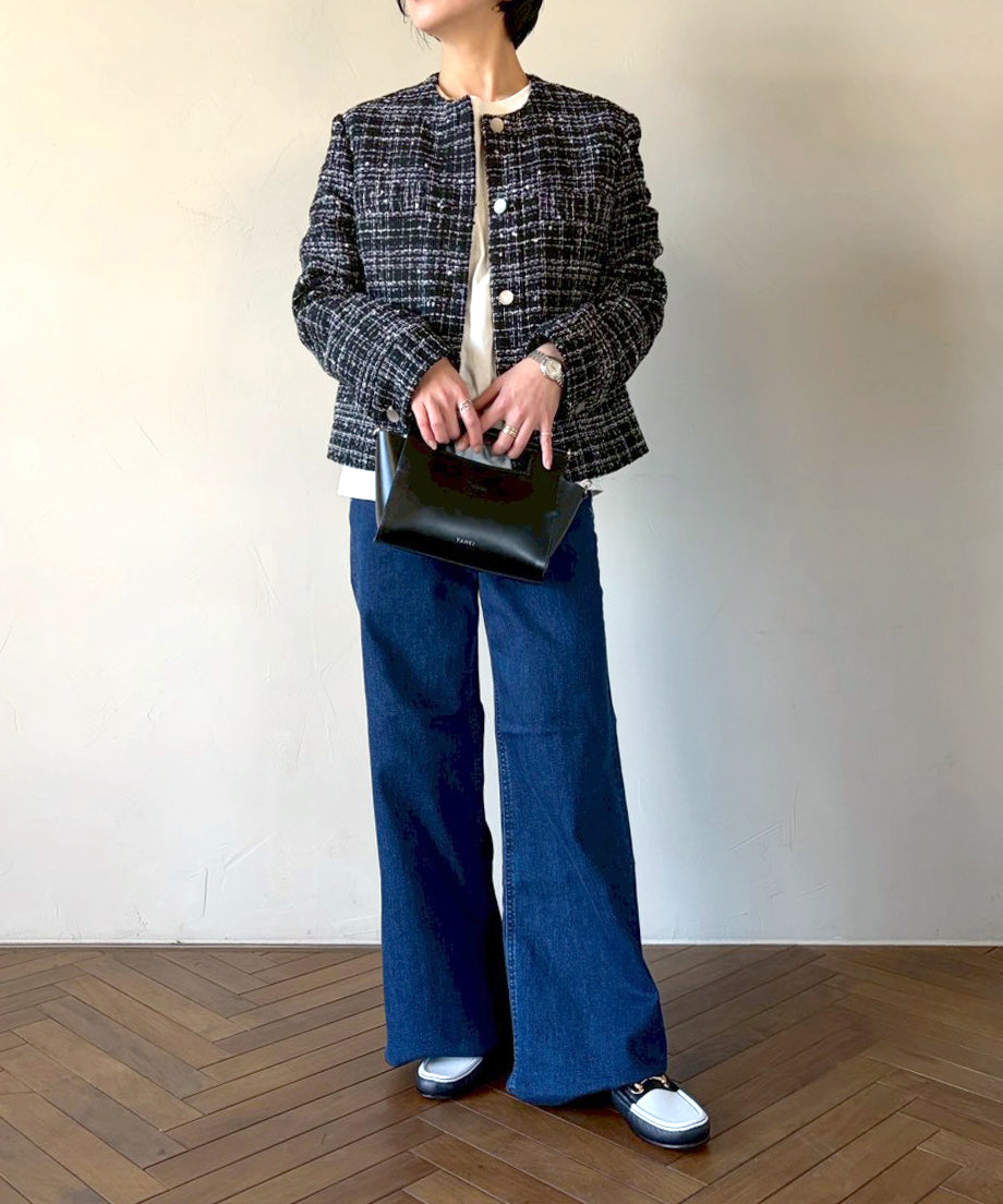 ややフィット感のあるツイードジャケット。程よくゆとりのあるストレートスリーブで、快適な着心地。上質なイタリア素材を使用し、クラシックを今の気分にアップデート。コントラストの効いた配色が、奥行きと立体感を演出します。