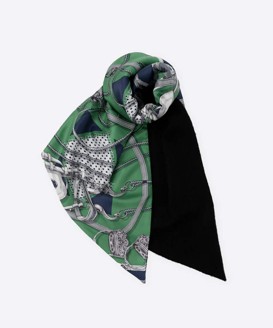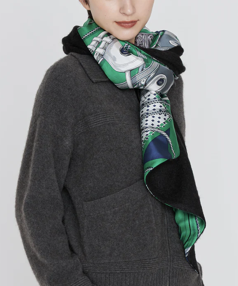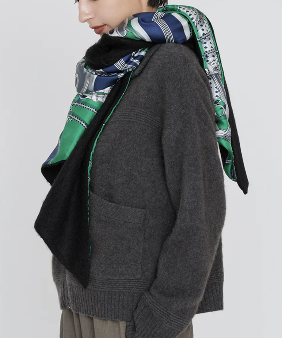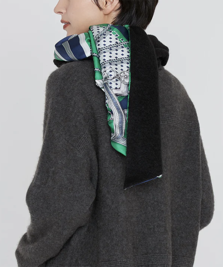 表地にシルク100%、裏地に無地ウールを使用した、上品で暖かなウールシルクマフラー。十分な長さがあり巻きやすく、巻き方次第でさりげなく覗く柄がスタイリングのアクセントに。防寒性と華やかさを兼ね備えた、今シーズンおすすめの一枚。