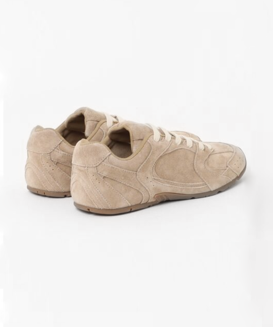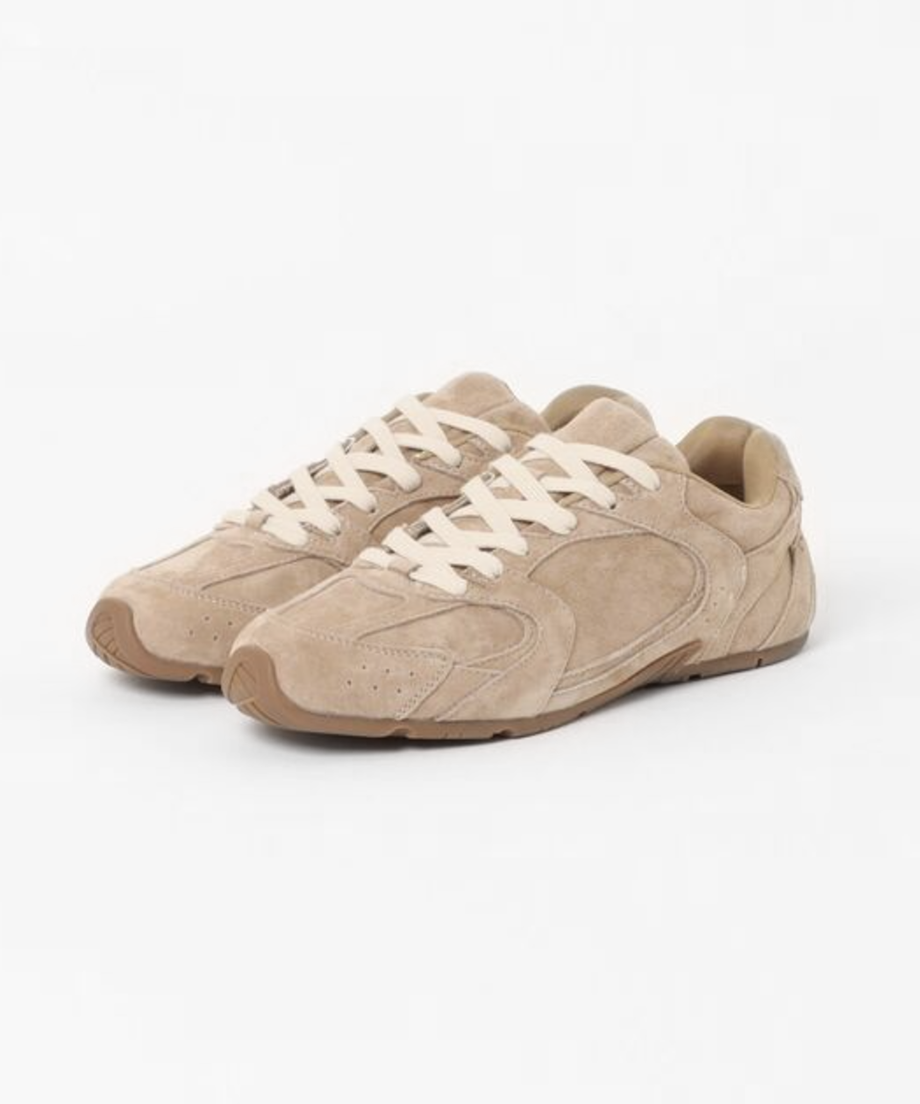 リッチ感漂うオールスエードのスニーカー。今季らしいデザイン性のある薄底シルエットで、カジュアルにもキレイめコーデの外しにも活躍する万能アイテムです。