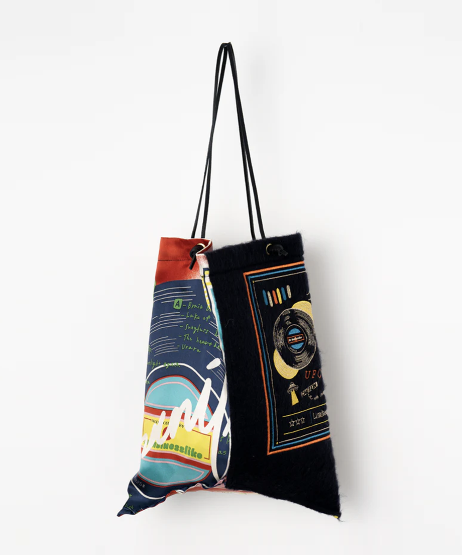 シルクスカーフと異素材を組み合わせた刺繍入りトートバッグ。サイドに付いたハンドルによって、持ったときに三角形のシルエットが生まれるユニークなデザインです。A4サイズが収まる大きさで、角度によって表情が変わるのも魅力。通勤・通学から休日のお出かけまで、幅広いシーンで活躍する人気アイテムです。