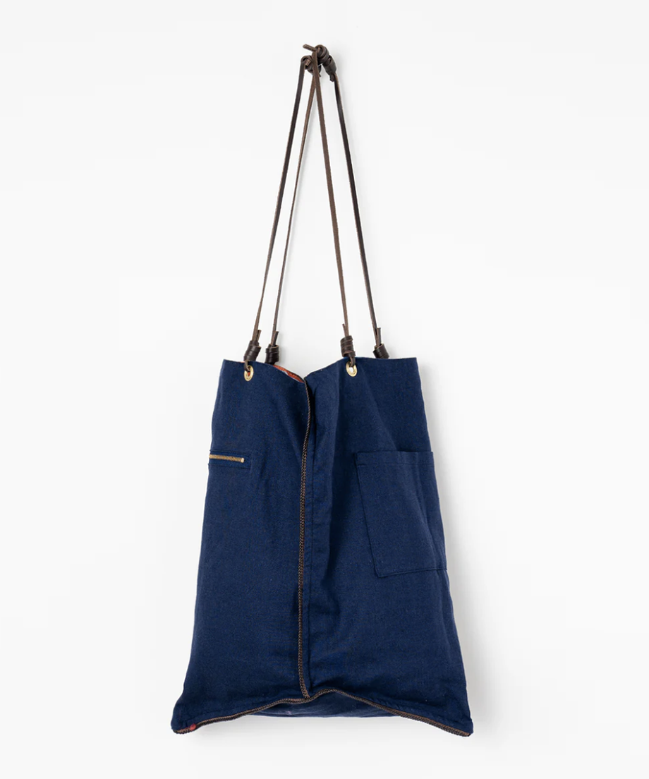 manipuri定番のトートバッグ。異なる2つの柄を組み合わせたデザインが、大人の遊び心を感じさせるアイテムです。裏返せばシンプルカラーのバッグとしても使えるリバーシブル仕様で、1つで2通りの表情を楽しめます。持ち手がサイドに付いており、持った時に三角形のフォルムになるユニークなデザインも魅力。A4サイズがすっきり入る実用的なサイズ感で、通勤・通学・お出かけなど、幅広いシーンで活躍してくれます。見る角度によって異なる印象を見せる、人気のトートバッグです。