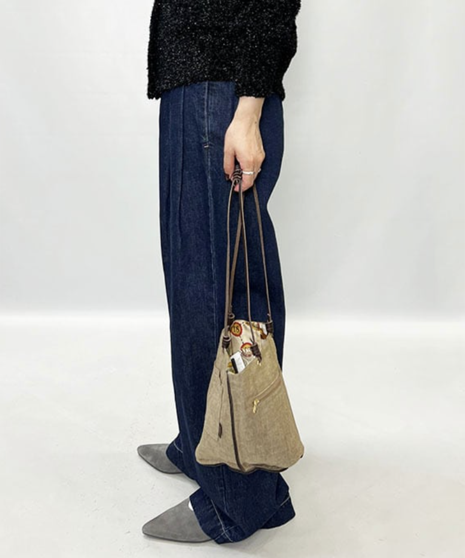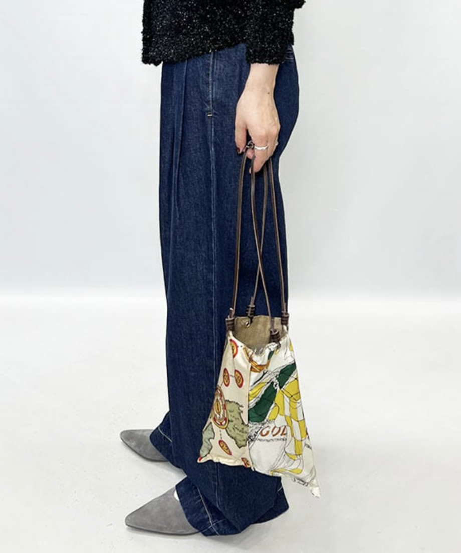 素 材:(表地)シルク (裏地)リネン、コットン (ハンドル)牛革