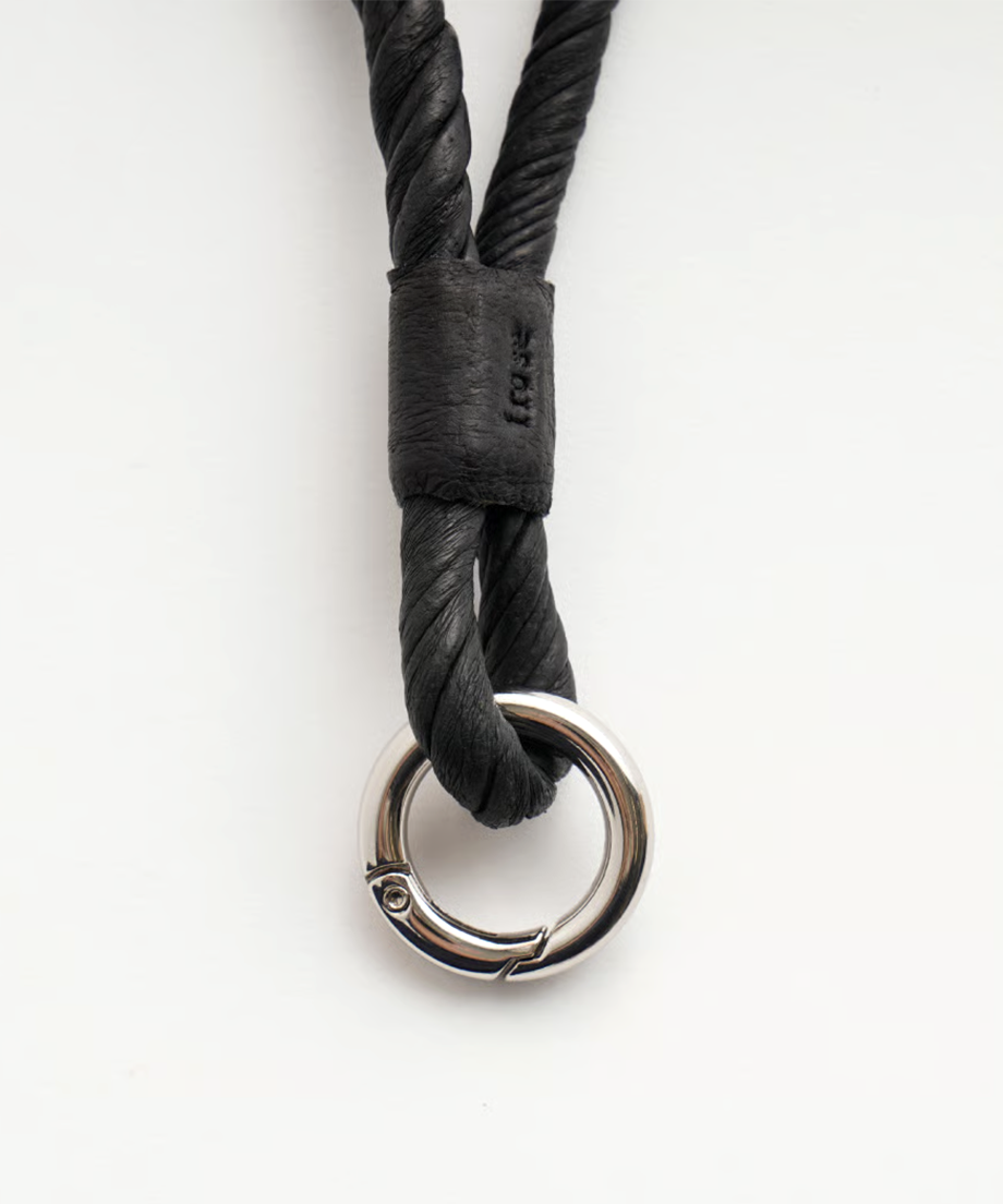 職人が手作業でシワを入れた一点ものの風合いが魅力で、使うほどに柔らかい光沢が増していきます。スマホやカメラ、鍵のストラップとして使いやすい長さで、丈夫なねじりハンドルがしっかり手に馴染む実用的なアイテム。