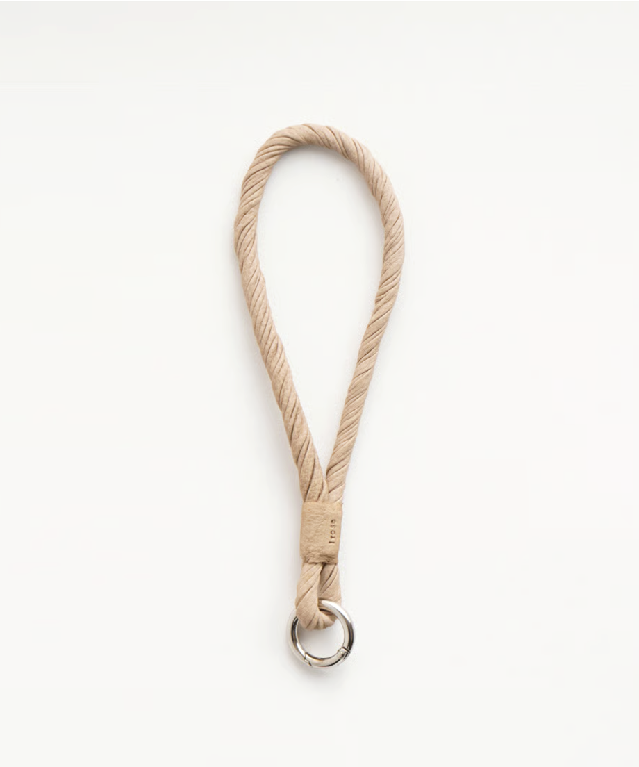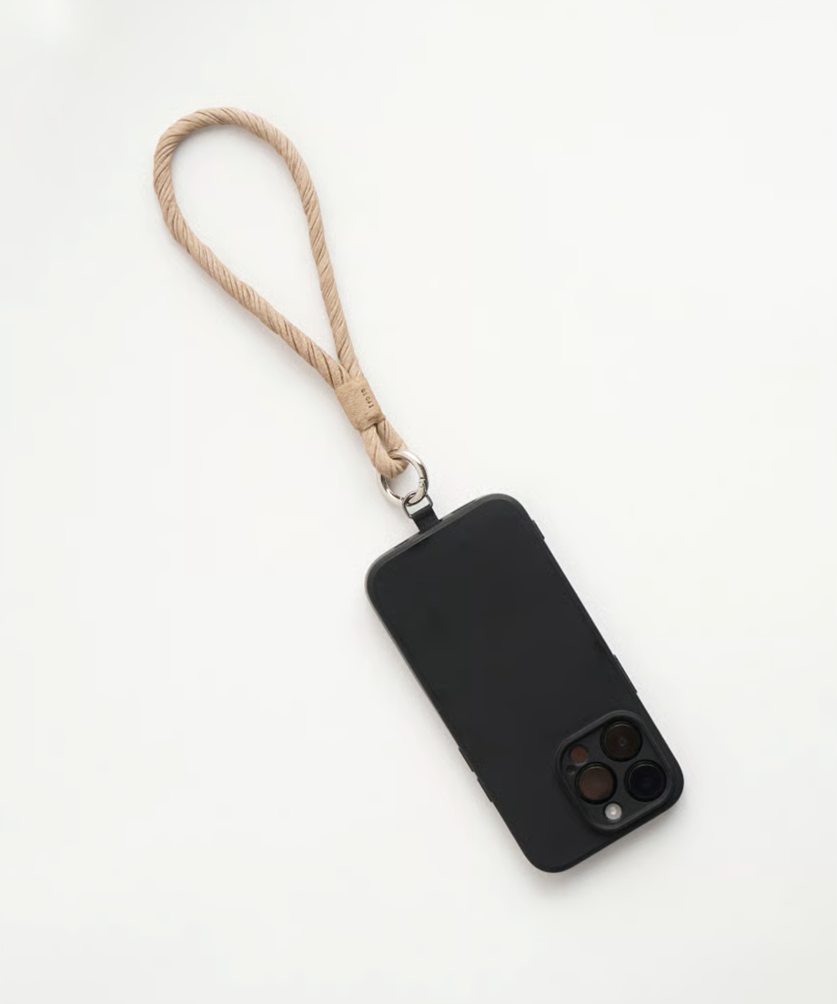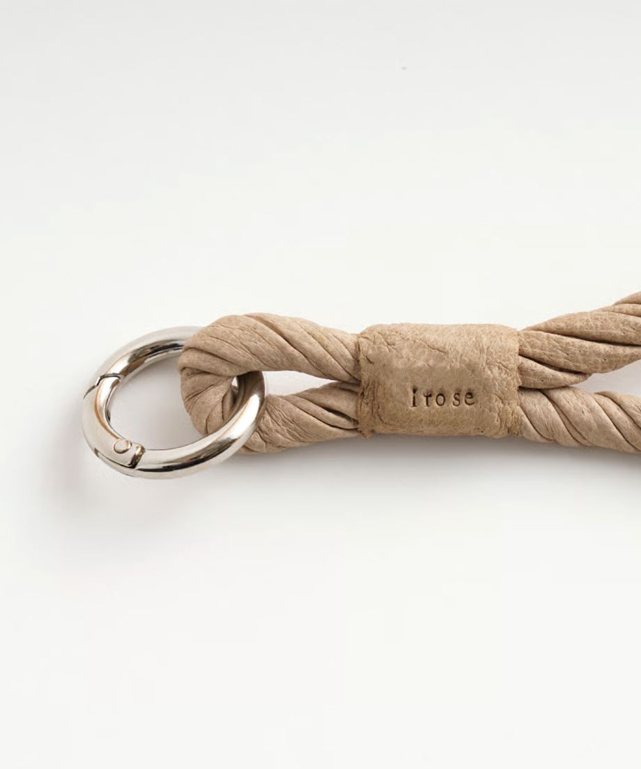 職人が手作業でシワを入れた一点ものの風合いが魅力で、使うほどに柔らかい光沢が増していきます。スマホやカメラ、鍵のストラップとして使いやすい長さで、丈夫なねじりハンドルがしっかり手に馴染む実用的なアイテム。