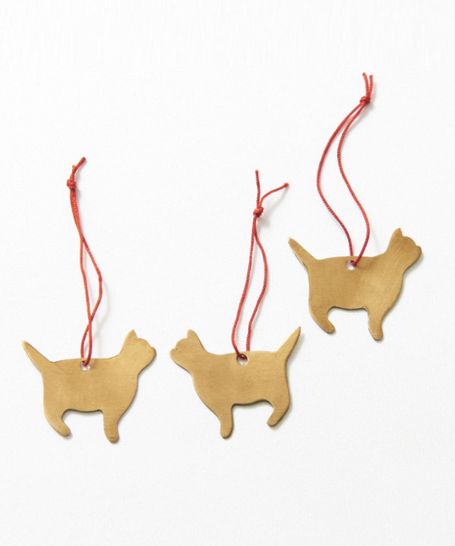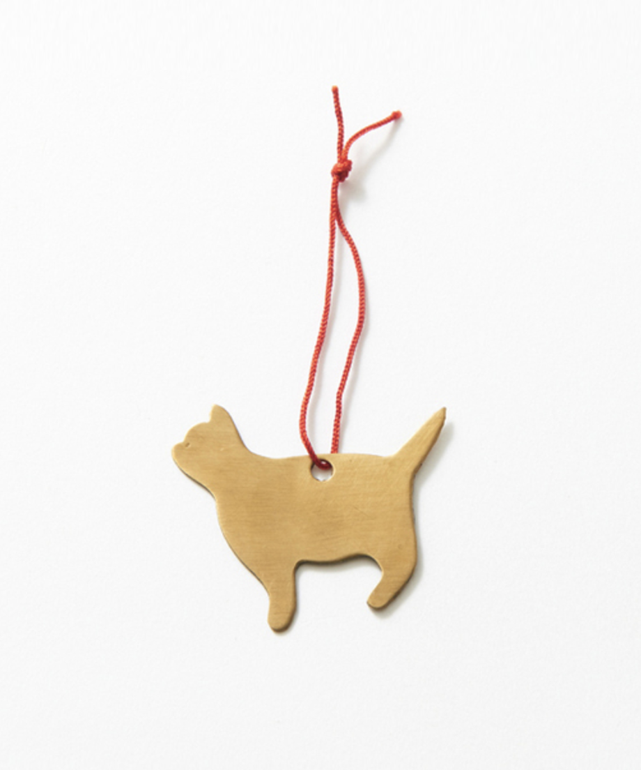 今にも歩き出しそうな猫をモチーフにした、ブラス(真鍮)製オーナメント。赤いループ付きで、クリスマスツリーやガーランドの飾りとしてはもちろん、アクセサリーパーツとしても楽しめます。