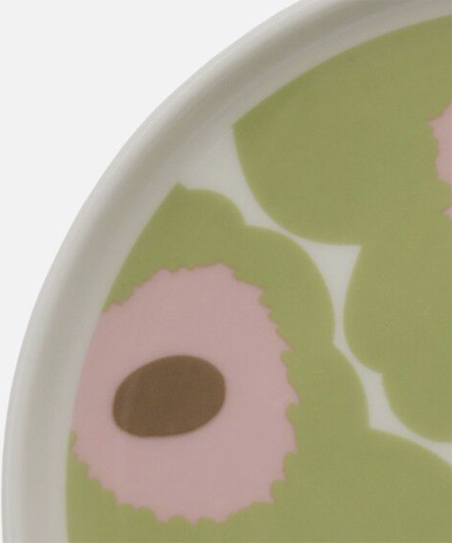 日本限定のUnikko柄プレート。ペールグリーンのやさしい色合いが、ナチュラルで上品な雰囲気を演出します。