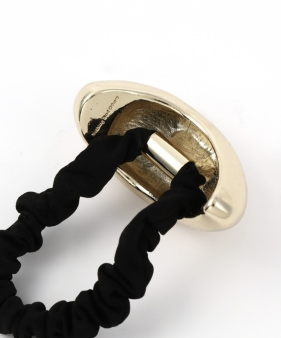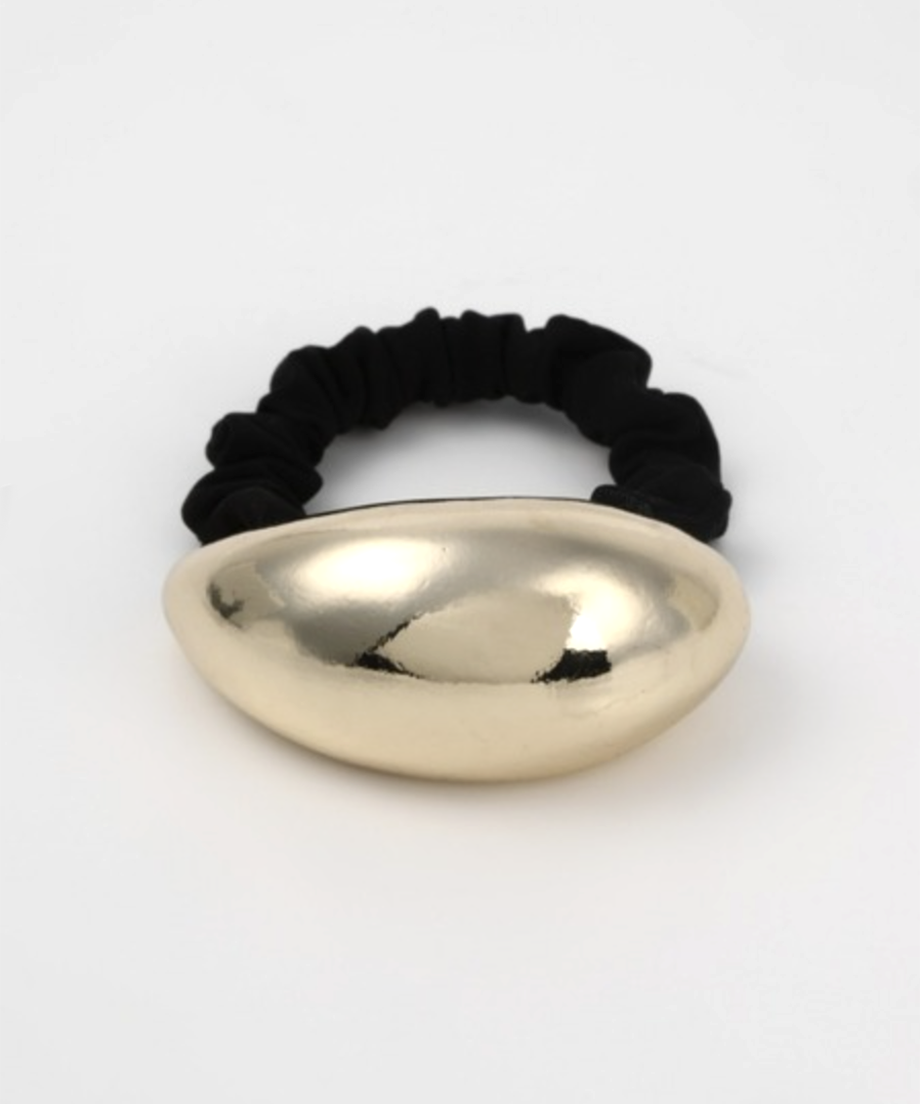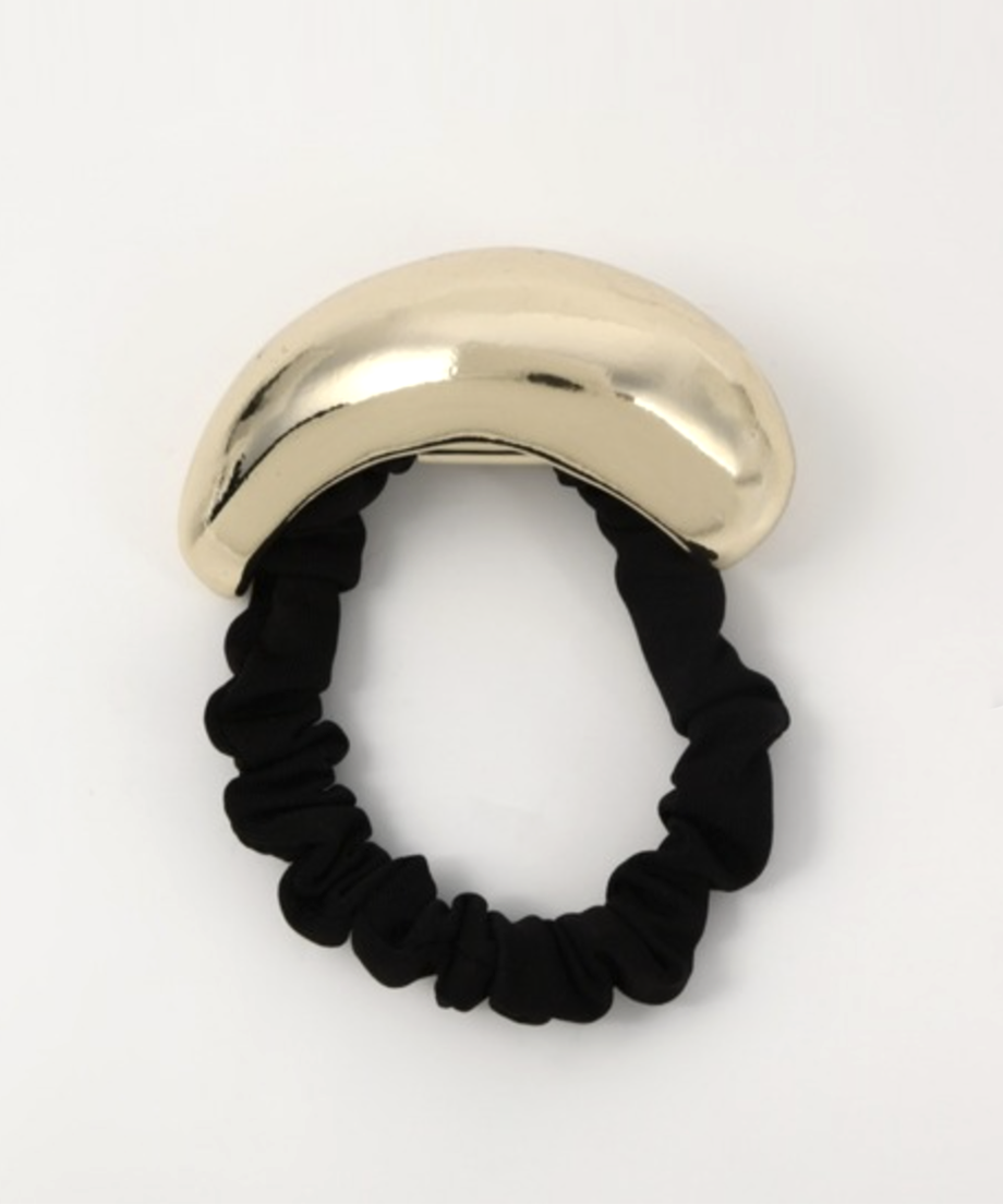 存在感のあるメタルモチーフが目を惹くシュシュ。緩やかなカーブを描くデザインは、クールさの中に女性らしさを添えてくれます。シンプルながらもこなれ感を演出でき、ひとつ結びやハーフアップに取り入れるだけで印象的なヘアスタイルに。手首に巻けばブレスレットのように楽しめ、コーディネートのアクセントにもなります。カジュアルからきれいめまで幅広いスタイルに馴染み、デイリーに活躍する万能アイテム。