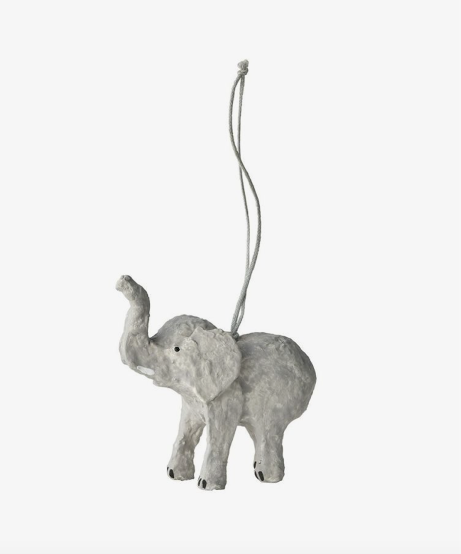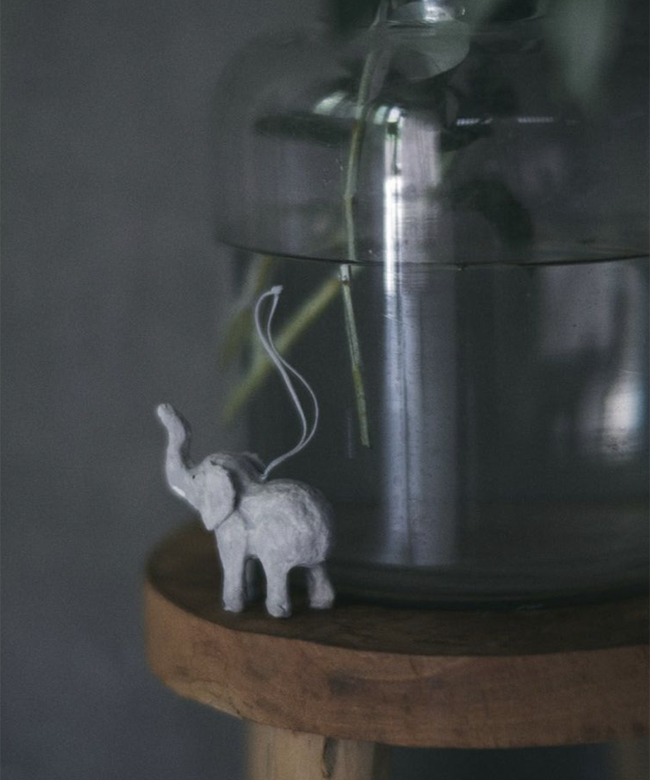 紙細工「ペーパーマッシュ」でつくられた、ハンドメイドのホリデーオーナメント。ひとつひとつ手仕事ならではの温かみがあり、素朴でのんびりとした雰囲気に癒されます。ツリーやリースに飾るのはもちろん、ドアノブにぶら下げたり、窓辺や棚に並べてもかわいらしい存在感。どの角度から見ても愛らしいゾウのオーナメントは今にも歩き出しそうな躍動感あるフォルムが魅力。クリスマスだけでなく、一年を通してインテリアのアクセントとして楽しめるアイテムです。専用ボックス入りです。