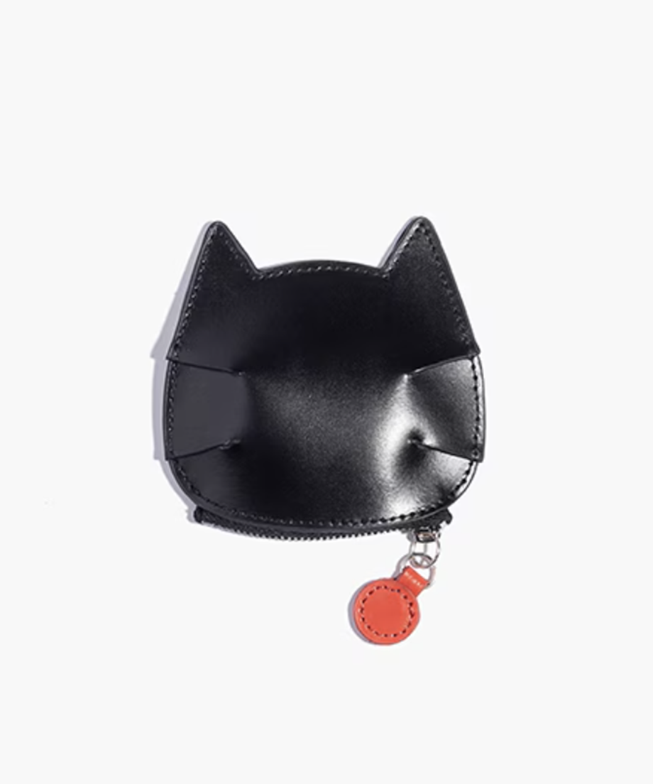 W FACEレザーを使用した、愛らしいネコ型のミニポーチ。コインや常備薬などの小物を可愛く持ち運べます。首輪についた鈴をイメージした、ファスナーの赤い引き手がさりげないポイント。中央がふっくらとした立体フォルムで、ボリュームのあるリングなどのジュエリーケースとしても活躍します。ギフトにもおすすめのアイテム。