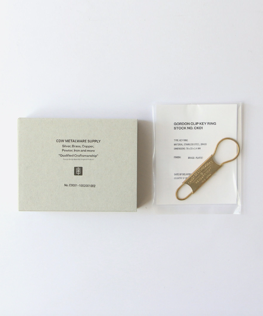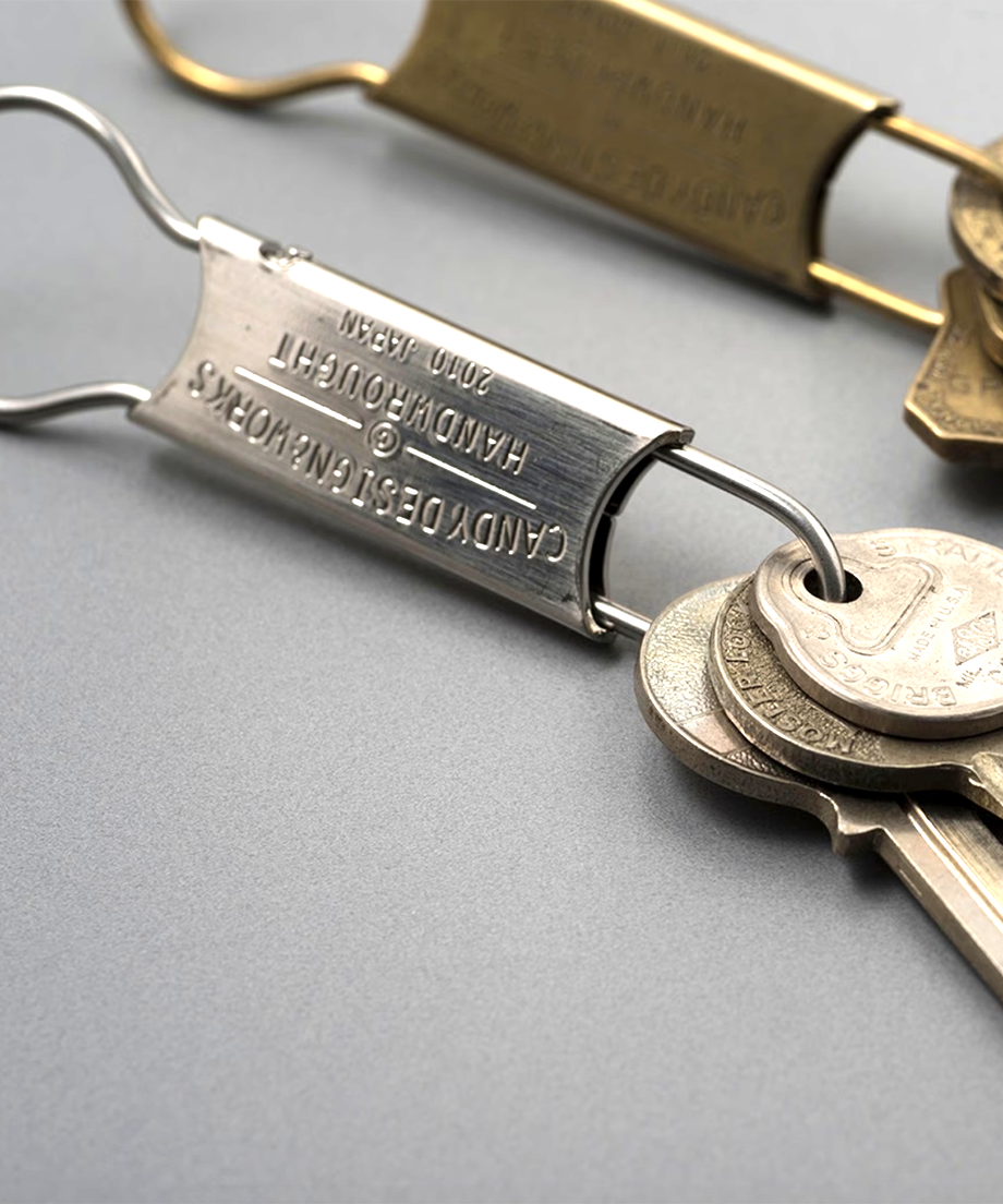 1930年代に使用されていたキーホルダーを現代的にリメイク。仕様やスケールを見直し、使いやすさを向上させました。スライドするだけで簡単に着脱でき、ベルトループやバッグのストラップにも手軽に取り付け可能。ヴィンテージ感と実用性を兼ね備えたアイテムです。